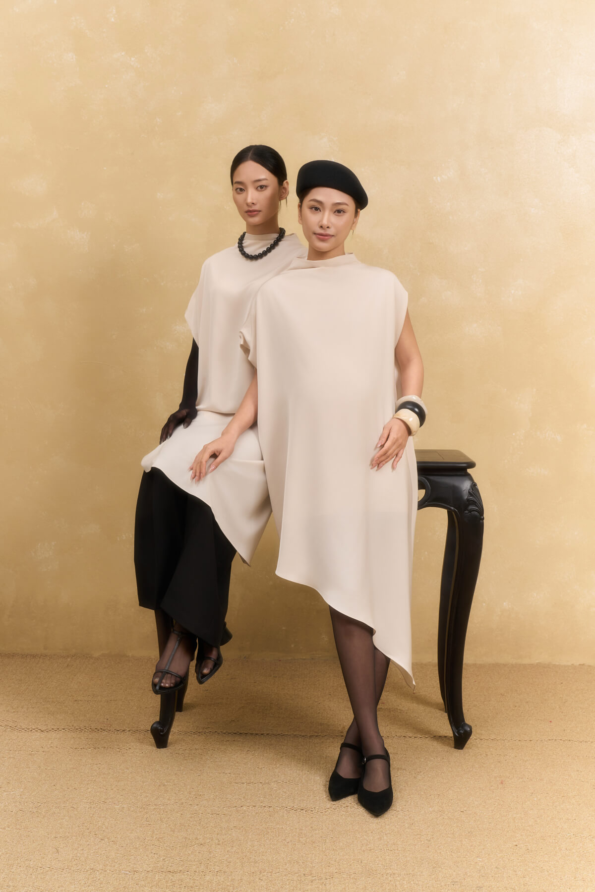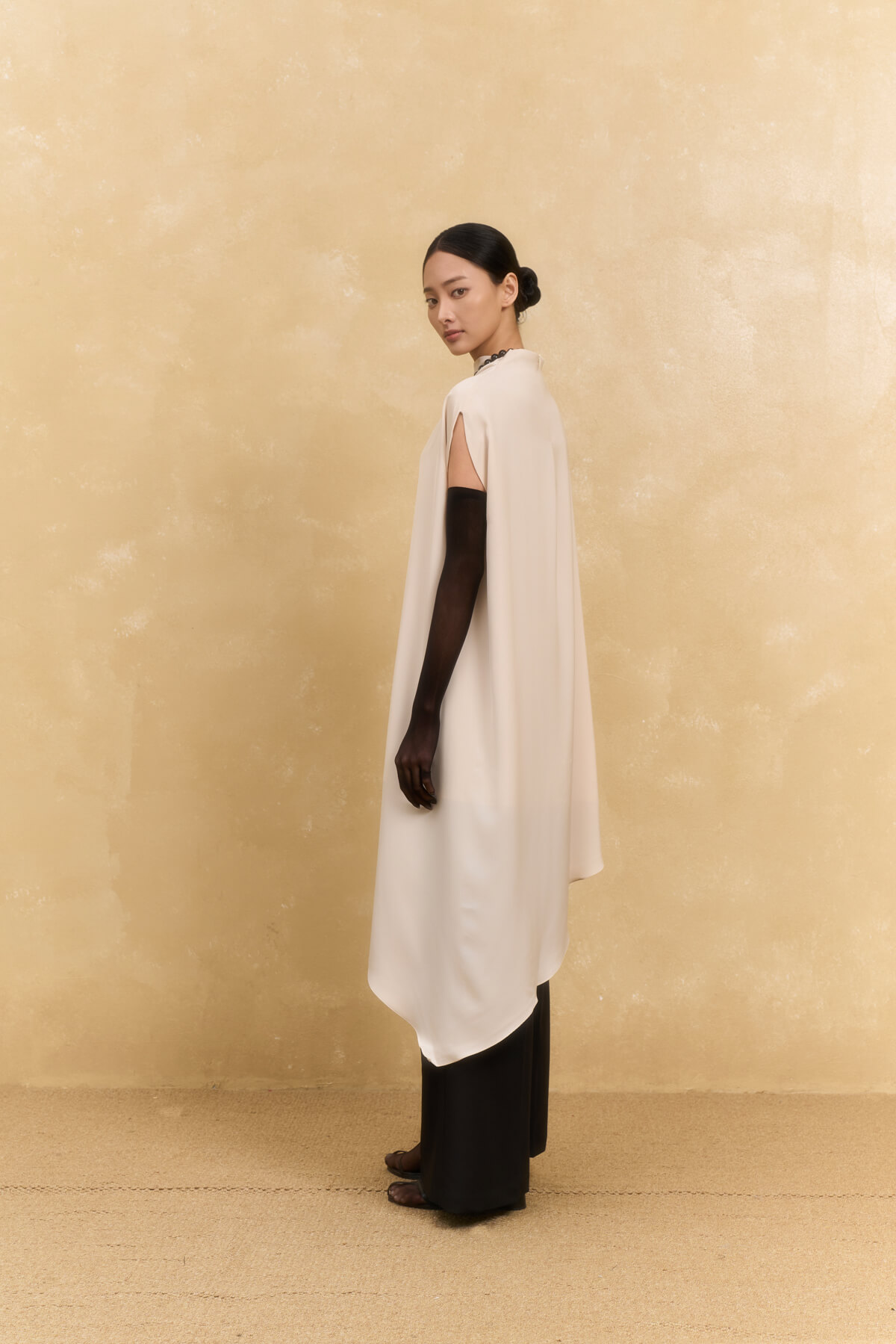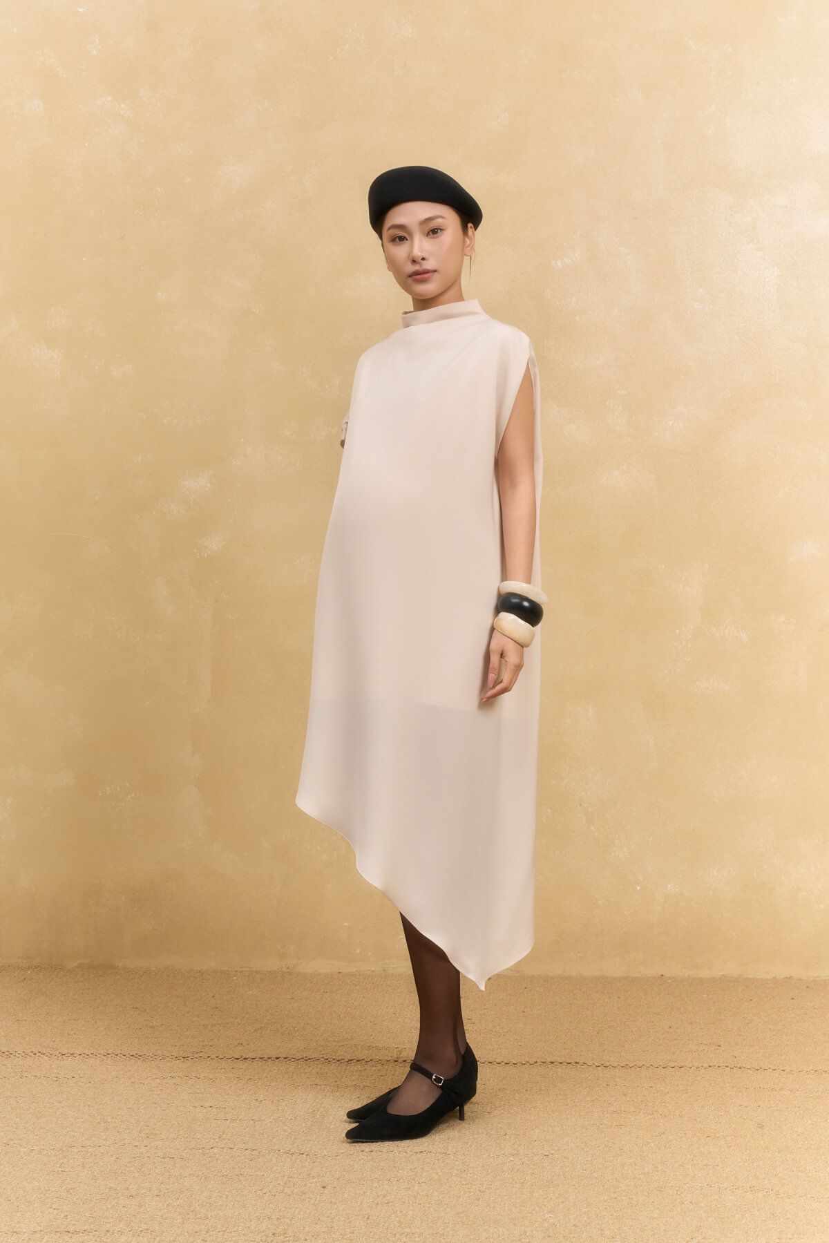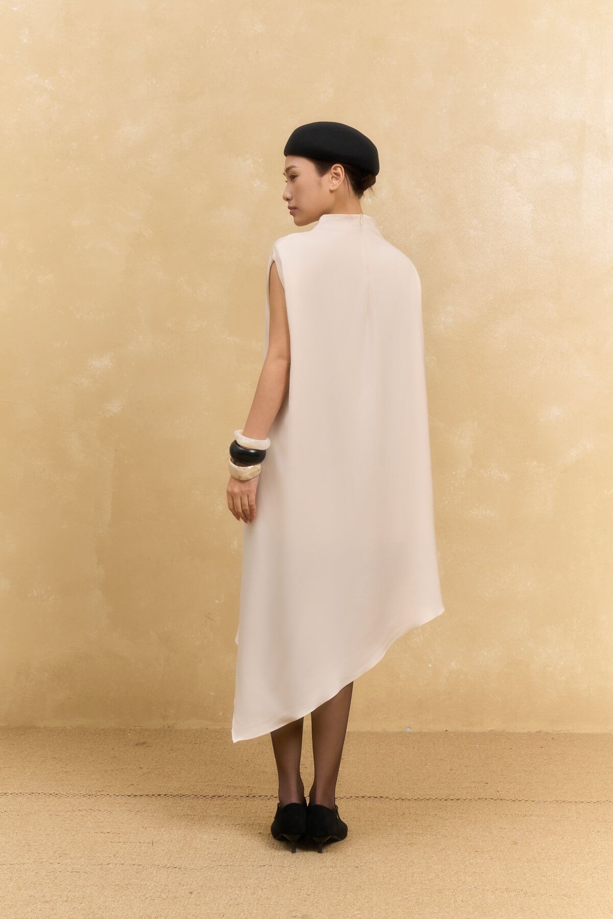 The Hailey Mock Neck Dress is a design that breathes modernity while maintaining the signature feminine softness of GENTLEMOM. Crafted from 180gsm heavy silk blended with 8% spandex, the fabric features a sleek, smooth surface with a slight stretch that remains wrinkle-resistant and holds its beautiful shape all day long. The asymmetrical cross-over design creates a slimming visual effect, making the overall silhouette look more graceful and sophisticated.