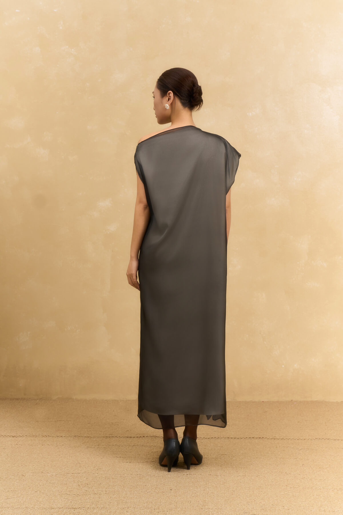 The Munn Off-The-Shoulder Silk Dress is a sophisticated fusion of a structured “Queen Silk” base and an outer layer of black silk. Crafted from high-quality, wrinkle-resistant fabric that is gentle on the skin, it ensures total comfort all day long.